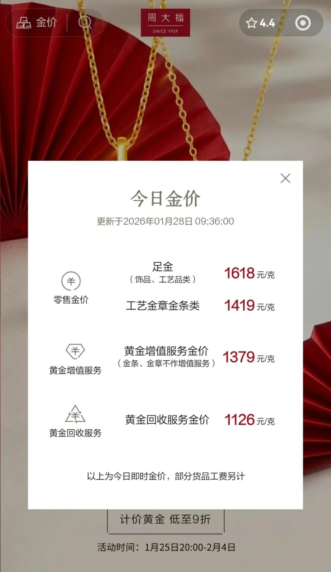 截至1月28日10时,周大福足金饰品报价1618元/克;老凤祥报价1620元/克;周生生报价1614元/克。