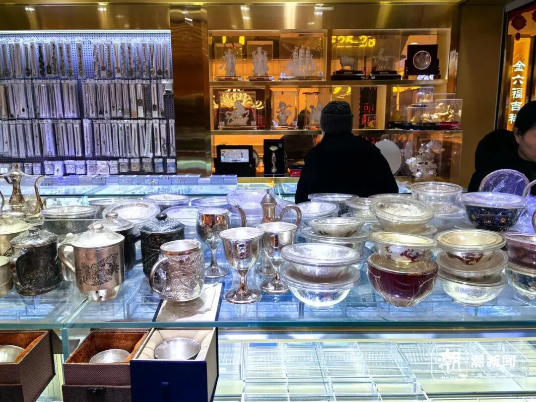 在市场里的粤王黄金、老牌黄金、中国黄金9999等多家金店,记者均看到店里挤满了顾客,一些顾客多的金店,能看到有十几位顾客同时在咨询、购买黄金饰品。同样的热闹景象也出现在市场内的银饰柜台,咨询、下单的人明显增多。