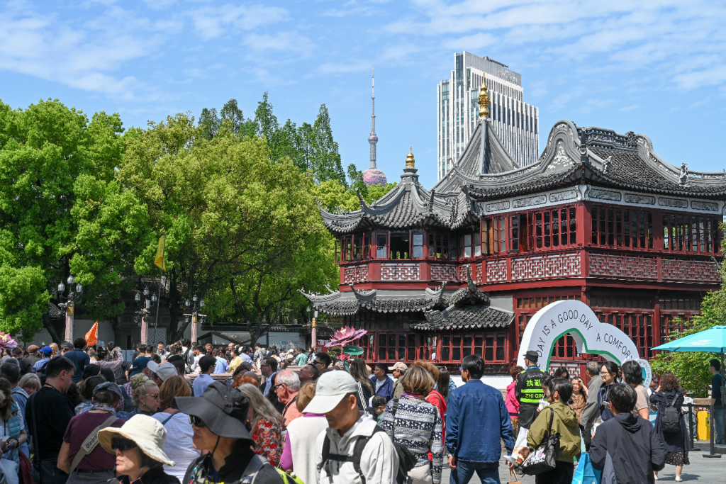 4月18日,上海豫园商城,九曲桥游客摩肩擦踵。澎湃新闻记者 朱伟辉 图