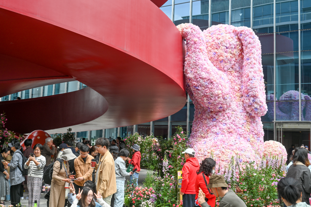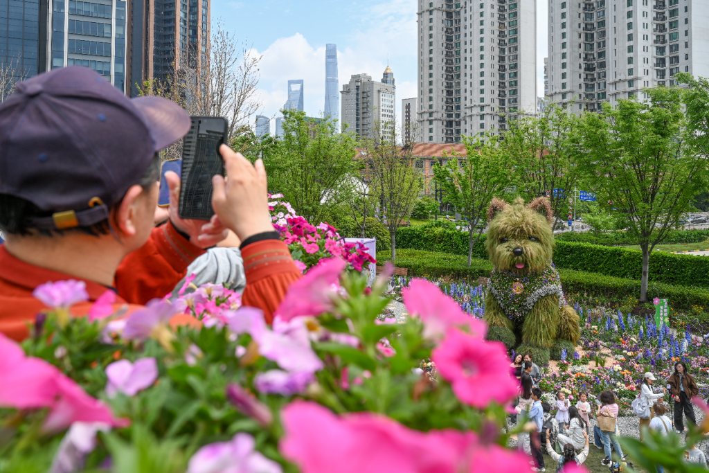静安苏河湾同样热闹非凡,“潦草小狗”周围围满了打卡拍照的人群。“非常适合带萌宠过来玩,有巨型西高地,还有好多萌宠互动装置,赏花又治愈!花卉节打卡完还可以沿着苏州河往外白渡桥走一走,沿河风景也不错!”自媒体博主Anna趁着周末好天气,和朋友一起来苏河湾打卡。